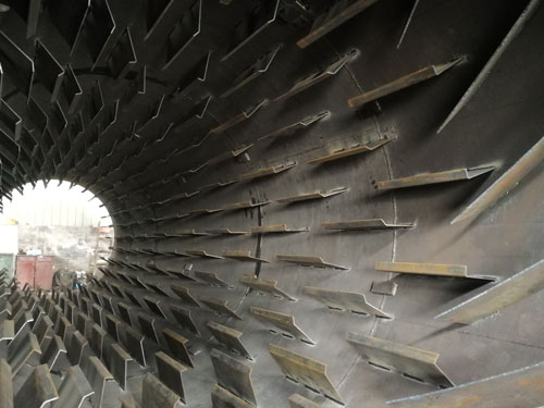 要想將干粉砂漿烘干到合理的水分,烘干機(jī)的安裝工藝和設(shè)計(jì)工藝非常重要,由于粉狀物料流動(dòng)性不如固體物料,干粉砂漿烘干機(jī)的安裝需要設(shè)計(jì)一個(gè)合理的傾斜角度,能讓物料在被烘干的過程中勻速流動(dòng),這個(gè)流速需要達(dá)到剛好物料到出口處時(shí)被烘干,所以傾斜角度的設(shè)計(jì)很重要。然后是設(shè)計(jì)工藝,粉狀物料會(huì)由于重力的作用沉積,要想充分將其烘干,必須進(jìn)行打散揚(yáng)起,讓高溫氣流從物料種穿過,這就對(duì)筒體內(nèi)的設(shè)計(jì)工藝提出要求,除了安裝揚(yáng)料板,還要對(duì)排布位置,間距、密度等參數(shù)有一個(gè)合理的設(shè)計(jì)。
